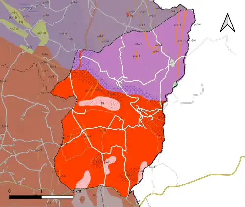 Der topographisch tiefste Punkt des Gemeindegebietes liegt mit 218 Metern über dem Meer im Tal des Trieux im Westen, der höchste Punkt mit 366 Metern im äußersten Nordosten bei Les Bitardes. Der Ortskern befindet sich auf 311 Meter. Die maximale Höhendifferenz beträgt 148 Meter.