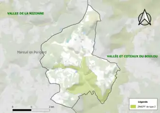 Unter dem Titel Vallée et coteaux du Boulou (Tal und Hanglagen des Boulous) besteht ein Schutzgebiet des Typus 2. Es folgt im Wesentlichen dem Schutzgebiet des Typus 1, ist aber etwas ausgedehnter, insbesondere im Tal des Ruisseau le Jallieu. Dieses Schutzgebiet folgt praktisch dem gesamten Flusslauf des Boulous – von seiner Quelle bis 200 Meter vor seiner Mündung in die Dronne. Es zeichnet sich durch eine außergewöhnliche Vielfalt an Insektenarten aus – insbesondere an Schmetterlingen und Libellen.