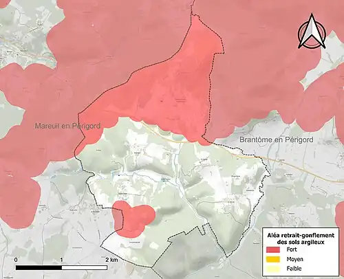 Wie die Risikokarte zeigt, ist Saint-Félix-de-Bourdeilles von der Gefahr durch Bodensetzungen gebietsweise stark betroffen, die Gefahren konzentrieren sich hierbei auf Böden in plio-pleistozänen Lockersedimenten im Norden und südlich von La Monerie.