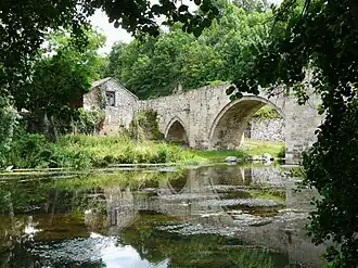 - Eine 5-bogige mittelalterliche Brücke führt über den Fluss Thouet; mit Auffahrten ist sie ca. 126 Meter lang (ohne Auffahrten nur 63,70 Meter). Die drei größeren inneren Bögen sind als Rundbögen ausgebildet, die beiden äußeren dagegen als Spitzbögen. Die aus hartem Gestein gemauerten Brückenpfeiler sind angespitzt um Baumstämme und Geröll besser abweisen zu können. Die über die Brücke führende Straße hat in Teilen noch ihr mittelalterliches Pflaster sowie mehrere Prellsteine an den seitlichen Brüstungsmauern. Auf der etwa 3 Meter breiten Brücke gibt es zwei Ausweichmöglichkeiten für Fußgänger, die bei einer derartigen Länge sicherlich manchmal notwendig waren. Brücke und Straße wurden im 13./14. Jahrhundert – wie es heißt – von den Mönchen des Klosters Saint-Jouin-de-Marnes erbaut; wahrscheinlich hatten diese aber die Hilfe fachkundiger Baumeister und Steinmetze. Die Brücke ist seit 1926 als Monument historique anerkannt.