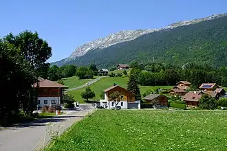 ![]() Blick auf Saint-Jean-de-Sixt, im Hintergrund der Mont Lachat | ||