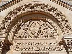 - Turm und Portal der romanischen, ursprünglich aus dem 12. Jahrhundert stammenden, jedoch im 19. Jahrhundert nahezu komplett neu erbauten Pfarrkirche Saint-Julien wurden bereits im Jahr 1910 als Monument historique unter Denkmalschutz gestellt.[1] Der quadratische Turm mit großen, breiten Öffnungen gehört zu den Interessantesten in Burgund. Der Skulpturenschmuck am Portal, Christus in der Glorie auf dem Tympanon und das Abendmahl auf dem Türsturz erinnern stark an den großen Tympanon der Abtei Saint-Fortunat. Überladen, ja geradezu manieriert, legt er jedoch auch Zeugnis ab von der lebendigen Inspiration und dem Talent der lokalen Bildhauer.