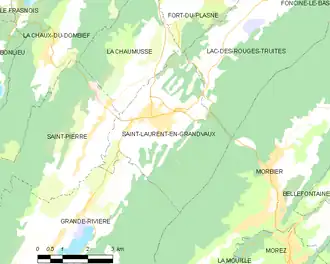 Nachbargemeinden von Saint-Laurent-en-Grandvaux sind La Chaumusse und Fort-du-Plasne im Norden, Lac-des-Rouges-Truites im Osten, Morbier und Grande-Rivière Château im Süden sowie Saint-Pierre im Westen.