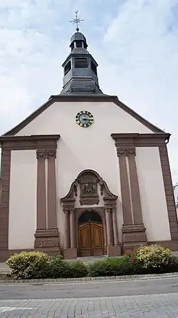 Das Gebäude der Kirche wurde in einem barocken Stil bis 1808 errichtet. Das Kirchenschiff hat ein durchgehendes Satteldach und ist von Nordwest nach Südost (Haupteingang) ausgerichtet. Der Haupteingang ist zur Hauptstraße N1 (Grand-Rue) gerichtet. Nordöstlich führt die N10 (Rue d’Echternach) in etwa parallel zur Kirche vorbei.