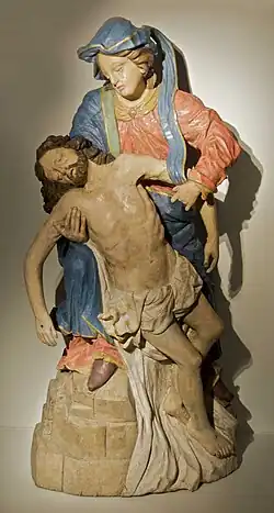 Die in der Kirche befindliche Pietà ist etwa 98 cm hoch und 43 cm breite Skulptur eines unbekannten Künstlers. Sie ist aus Eichenholz handgeschnitzt und stammt aus dem 18. Jahrhundert. Sie ist eine der wenigen Darstellungen in Luxemburg, in denen die Muttergottes stehend und weinend dargestellt wird. Dies ist eine typische Darstellung südeuropäischer Künstler. Es wird vermutet, dass die Pietà aus der alten Kirche übernommen wurde.