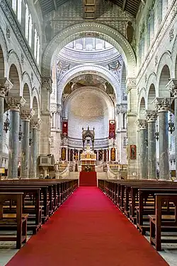 Im Inneren besteht die Basilika aus einem großen Hauptschiff mit zwei kleineren Seitenschiffen.