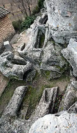 - Hinter dem Chor der Kirche liegt ein kleines Gräberfeld aus dem 11. Jahrhundert mit Felsgräbern.