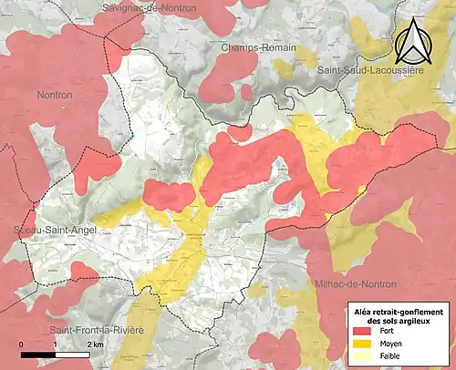 Wie die Risikokarte zeigt, ist Saint-Pardoux-la-Rivière zu 40,7 % seines Gemeindegebietes mittelmäßig bis relativ stark von der Gefahr durch Bodensetzungen betroffen.