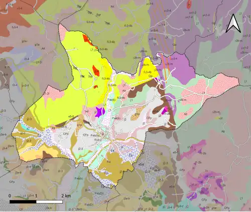 Die flachliegenden Sedimente um den Ortskern bestehen aus Lias und kalkigem Dogger. Der in der Nähe der Störungen teilweise verkieselte Lias wird aus Hettangium (Sandsteine, grobe Sandsteine und Konglomerate der Formation l1), Sinemurium (Oolithkalke, teils dolomitisch, der Formation l3-4) und Toarcium (Tonsteine und graue Mergel der Formation l7-9) aufgebaut. Diese toarcischen Tone wurden von einer mittlerweile stillgelegten Ziegelei verwertet. Der Dogger setzt sich aus kryptokristallinen Kalken, bioklastischen Kalken und Oolithkalken des Oberbajocs und Bathoniums zusammen (Formationen j1b, j1c-2a und j2b) und kann bei Négrecombe rekristallisiert vorliegen (jC). Die Kirche Saint-Pardoux steht auf Oberbajoc.