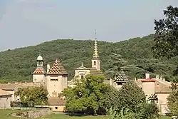 Die Klosteranlage Chartreuse de Valbonne, bei der es sich um eine Kartause handelt, liegt rund sechs Kilometer außerhalb des Ortskerns in einer Talsenke. Von dieser leitet sich der Name ab, der sich aus vallis bona entwickelt hat und mit „gutes Tal“ zu übersetzen ist. Die Niederlassung wurde 1203 gegründet und entstand somit etwas mehr als hundert Jahre nach der Gründung des Kartäuserordens. Als durch den Hundertjährigen Krieg im 14. und 15. Jahrhundert zahlreiche Plünderer durch das Land zogen, war auch das Kloster betroffen und wurde schwer beschädigt. Dasselbe passierte im Verlauf der Hugenottenkriege, wobei die Chartreuse de Valbonne 1585 geplündert und in Brand gesetzt wurde. Dabei wurden die Dokumente, die seit ihrer Gründung dort entstanden und lagerten, vernichtet. Dank des Engagements eines Geistlichen namens François Laurent wurde die Kartause ab 1633 wieder aufgebaut. Dieses ist im Wesentlichen bis heute erhalten, auch wenn die Hauptkirche aus den 1770er-Jahren stammt.