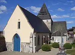 Die Kirche Saint-Ouen ist dem Heiligen Ouen geweiht. Sie ging 1097 in den Besitz der Abtei Le Bec über, die die Priorei Saint-Pierre gründete. Bis dahin dienten dort acht Geistliche, die ihren Unterhalt durch Pfründen bestritten und keinem Orden angehörten. Die Kirche fungierte danach bis ins 15. Jahrhundert zugleich als Pfarr- und als Prioreikirche. In der Kirche sind Wandbemalungen aus dem 14. und 15. Jahrhundert an der Südmauer des Kirchenschiffs zu sehen. Die Südmauer selbst stammt aus dem 11. Jahrhundert. Im 13. Jahrhundert wurde der Chor erstmals umgebaut, außerdem wurde der Boden der Kirche um etwa einen Meter angehoben. Im 15. Jahrhundert bauten die Mönche eine Kapelle im gotischen Stil anstelle des Chors. Kirche und Kapelle waren durch eine Mauer getrennt. Die Kirche wurde im Folgenden von der Bevölkerung und die Kapelle von den Mïonchen genutzt. Im 16. Jahrhundert wurde der südliche Teil des Querschiffs, Teile des Chors und das Deckengewölbe des Glockenturms erneuert. Die Nord- und Westmauer des Kirchenschiffs wurde im 17. oder 18. Jahrhundert erneuert und das ganze Kirchenschiff im 19. Jahrhundert restauriert. Der nördliche Teil des Querschiffs war schon vor 1832 zerstört. Die Kirche wurde 1896 offiziell als „historisches Denkmal“ klassifiziert.