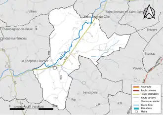 Baspeyrat, Beau Fournier, Bouchaillon, Bruzac, Cesserou, Champlouviers, Château de Bruzac, Châtellerie, Chef du Clos, Chez Biard, Chez le Cafi, Combes de la Bénéchie, Coutaudou (bzw. Couteaudoux), Doumarias, Ferrières, Fôret, Guichardie, L'Arase, L'Étang, La Béloffie, La Bélonnie, La Bénéchie, La Braconnerie, La Ladrerie, La Macle, La Patissière, La Pépide, La Rebière, La Rivarie, Lavy, Le Cluzeau, Le Grand Bois, Le Malebrau, Lébraudie, Les Carrières, Les Gardes, Les Genêts, Les Grafeils, Les Grands Taillis, Les Granges, Les Landes, Les Pénéloux, Les Pierriches, Les Piles, Les Salinières, Les Vaures, Maison Neuve, Montet, Puy Belair, Puy Jean, Puy Pela, Reynerie, Saint-Chavit, Sardenne, Talussou und Trépart.