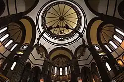 Im Innern der Kirche befindet sich unter anderem ein gewaltiger neuromanischer Radleuchter, der dem verschollenen Original in der Abteikirche Weißenburg nachempfunden ist.