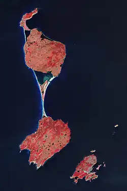 Die Inselgruppe besteht aus den Inseln Saint-Pierre (rund 26 km²), Miquelon-Langlade (etwa 205 km²) sowie weiteren kleineren Inseln und hat eine Gesamtfläche von 237,49 km²[1]. Früher waren die Inseln Miquelon und Langlade getrennt, heute sind sie über einen schmalen Isthmus verbunden.