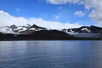 ![]() Die St. Andrews Bay mit der Mündung des Heaney-Gletschers (rechts) im Januar 2011 | ||