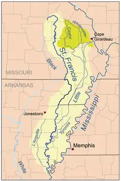Der Saint Francis River ist ein 686 km langer rechter Nebenfluss des Mississippi Rivers im Südosten von Missouri und dem Nordosten von Arkansas in den Vereinigten Staaten.
