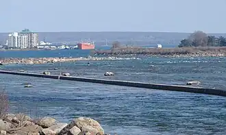 ![]() Blick auf die Sault Ste. Marie International Bridge, das kanadische Ufer auf der linken Seite | ||