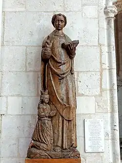 Die Skulptur Saint Mathurin in der Basilika St-Mathurin in Larchant, einer französischen Gemeinde im Département Seine-et-Marne der Region Île-de-France, wurde im 15. Jahrhundert geschaffen. Eine Quelle berichtet, dass die Heiligenskupltur im Jahr 1462 durch einen Mönch von Paris nach Larchant kam.