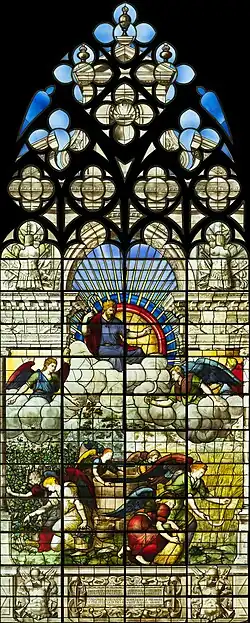 Die Bleiglasfenster im Chor wurden in den 1550er-Jahren von dem Glasmaler Nicolas Beaurain geschaffen. Der Künstler, der die Kartons schuf, ist nicht bekannt. Die ungewöhnlich großen Darstellungen beziehen sich auf die Offenbarung des Johannes. Von den 22 Kapiteln dieses biblischen Buches werden zwölf eschatologische Visionen aus sieben Kapiteln dargestellt, und zwar einige der Visionen beim Öffnen des Buchs mit den sieben Siegeln und die „Sieben-Posaunen-Vision“, in denen Plagen und Bedrängnisse angekündigt werden, um die Menschen zur Umkehr vom Götzendienst zu mahnen.[6]