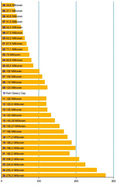 - ↑ Bilderserie: NFL Salary Cap: Wie sich die Gehaltsobergrenze von 1994 bis 2025 entwickelt hat. Abgerufen am 1. Juni 2025.