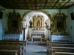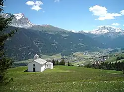 Die Kirche wurde St. Bartholomäus und St. Mauritius geweiht, jedoch findet jedes Jahr am Sonntag, der sich am nächsten zum 13. Juni befindet (Gedenktag von St. Antonius von Padua), ein Gottesdienst in der Kirche statt. Die Kirche wird wegen ihrer romantischen Lage und Aussicht oft für Hochzeiten gebucht. Sie wird 1508 erstmals urkundlich erwähnt[1]. Andere Quellen besagen, dass sie 1595 gebaut[2] und geweiht[3] wurde. Sie wurde 1662 und vor wenigen Jahren in mehreren Etappen renoviert. Der kreuzgewölbte Chor stammt vom 1595, die Malereien von 1662. Im rechteckigen Schiff befindet sich eine Leistendecke von 1660. Im Hochaltar vom 1662 befindet sich die Skulptur vom Hl. Bartholomäus um 1510. Der Altar wurde 1905 renoviert.