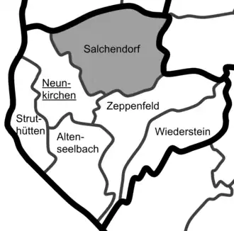 ![]() Lage des Ortes Salchendorf innerhalb der Gemeinde Neunkirchen.