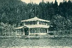 Salettl ist ein oberdeutscher Begriff der Umgangssprache. In den amtlichen Baueingaben werden Bauten dieser Art, die zumeist von Vorstadtwirtshäusern bei den Biergärten errichtet wurden, Sommerhalle, Trinkhalle oder Gartensaal genannt.[3] Eines der repräsentativsten Salettln war der zweigeschossige Pavillon am Schwarzen See bei Markt Eisenstein im Böhmerwald. Der 1899 errichtete imposante Bau hatte aber nicht lange Bestand, er ist abgebrannt.
