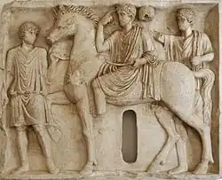 Grabrelief des späten 2. Jahrhunderts n. Chr. mit Darstellung eines reitenden Saliers (Rom, Museo Nazionale Romano)