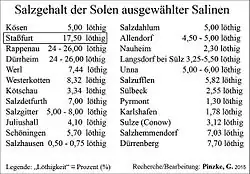 - ↑ Der Salinenbetrieb und Steinsalzbergbau in dem Preussischen Staate im Jahre 1859. (nach amtlichen Quellen bearbeitet.): A. Salinen des Staates. In: Zeitschrift für das Berg-, Hütten- und Salinenwesen in dem Preussischen Staate, 1860, 8. Band, S. 163, Verlag der Königlichen Geheimen Ober-Hofbuchdruckerei (R. Decker) Berlin.