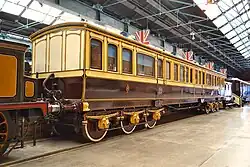 Im Königreich Sachsen besaß der Hof ebenfalls seit 1853 Salonwagen, später einen Hofzug. Die Wagen von 1853 wurden ab den 1880er Jahren durch neue Fahrzeuge ersetzt, die alten Wagen 1901 verschrottet.[21] Ein Wagen von 1885 ist erhalten und wird im Verkehrsmuseum Dresden aufbewahrt.