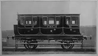 Der Wagen wurde 1842 für die London and Birmingham Railway gebaut, dem gleichen Jahr, in dem auch Königin Victoria sich am 13. Juni 1842 erstmals der Eisenbahn anvertraute.[1] Das Fahrwerk und der Rahmen des Wagens wurden in den Werkstätten der Eisenbahngesellschaft in Euston gefertigt, der Wagenkasten aber durch eine Werkstatt, die bisher Kutschen hergestellt hatte. Das Fahrzeug wurde von der Eisenbahngesellschaft mit „No. 2“ bezeichnet.[2] Königin-Witwe Adelaide nutzte den Wagen wohl bis zu ihrem Tod 1849.[3] Das Fahrzeug soll als Modell für andere königliche Salonwagen in Europa gedient haben.[4]
