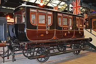Der Salonwagen der Königin Adelaide ist der älteste erhaltene Salonwagen der Welt. Er steht heute im National Railway Museum in York.[Anm. 1]