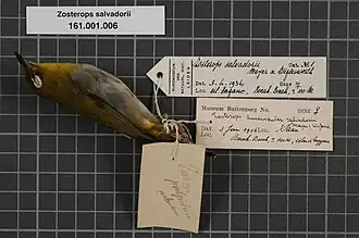 Gegenwärtig wird der Salvadori-Brillenvogel als Unterart des Swinhoebrillenvogels (Zosterops simplex) aufgefasst.