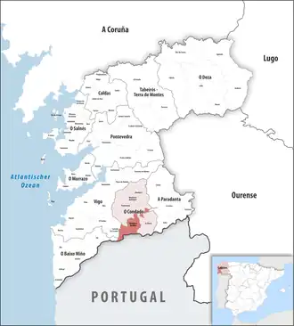 Die Gemeinde befindet sich an der südlichen Grenze der Provinz Pontevedra, am Zusammenfluss der Täler der Flüsse Tea und Minho und an den natürlichen Grenzen der Serra da Cañiza. Sie grenzt im Osten an die Gemeinden As Neves, im Norden an Mondariz und Ponteareas und im Süden an den Fluss Minho, welcher sie von Portugal trennt.