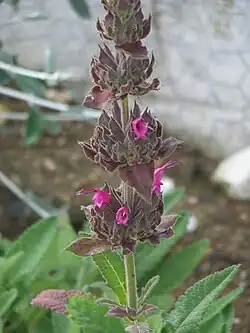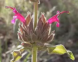 Die Blüten von Salvia spathacea sind ornithophil und werden von Kolibris bestäubt.[4]