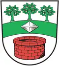 Blasonierung: „In Silber ein nach oben gebogener grüner Balken, belegt mit einem silbernen Salzkristall, begleitet oben von drei bewurzelten grünen Bäumen, unten von einem gemauerten runden roten Brunnen.“[8] |