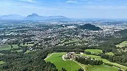 Außerhalb der Siedlungsräume liegen im Stadtgebiet von Salzburg die geschlossenen Landschaftsräume Hellbrunn sowie Gaisberg am Fuß des Stadtbergs Gaisberg und Heuberg, das die im Stadtgebiet liegenden, teils besiedelten Anhöhen des gleichnamigen Bergs einnimmt.[3] Die Landschaftsräume werden ebenfalls als Stadtteile geführt.