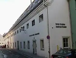 - ↑ Stadt Regensburg, Amt für Archiv und Denkmalpflege, Denkmalsteckbrief Andreasstraße 26 / 28 (Stand 2009)