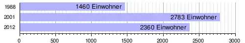 Im Hauptort lebten bei der Volkszählung 2012 2360 Einwohner in 268 Haushalten,[1] bei der Volkszählung 2001 2783 in 334 Haushalten[11] und bei der Volkszählung 1988 1460 in 167 Haushalten.[12]
