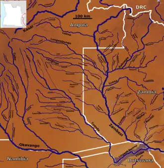 | Rechte Nebenflüsse | Luena (Angola), Lungwebungu, Luanginga, Linyanti, Gwayi, Sengwa, Hunyani, Sanyati, Luenha, Muira, Pompue | |
