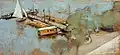 Gustav Marx | Hafen von Teufelsbrück | Pastell auf Papier | 53,5 × 77,5 cm | 1890 | Erworben aus verschiedenen Beiträgen, 1919 verkauft, Verbleib unbekannt |