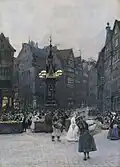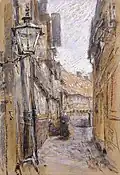 Franz Skarbina | Hof beim Schaarmarkt | Aquarell auf Papier | 60 × 46 cm | 1891 | Erworben mit Mitteln aus dem Vermächtnis August Philippi, 1930 verkauft, Verbleib unbekannt |