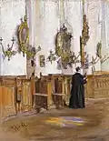 Alfred Mohrbutter | In der Kirche zu Allermöhe | Öl auf Leinwand | 110 × 154 cm | 1896 | Geschenk Senator Gerhard Hachmann aus dem Vermächtnis J. H. von Fintel und Frau, geb. Cordes (Inv. Nr. 1793) |
