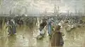 Ludwig Dettmann | Der Fischmarkt in Altona | Gouache auf Papier | 60 × 108,5 cm | 1890 | Geschenk Helene Donner (Inv. Nr. 2211) |