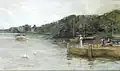 Ludwig Dettmann | Am Deich bei Waltershof | Aquarell auf Papier | 41 × 73.5 cm | 1890 | Erworben aus verschiedenen Beiträgen 1923 verkauft, Verbleib unbekannt |