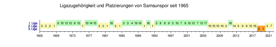 Samsunspor Kulübü oder kurz Samsunspor ist ein türkischer Fußballverein aus Samsun.[1] Der Verein spielte ab dem Sommer 1969 mit kurzen Unterbrechungen auf alle nachfolgenden Jahrzehnte verteilt 30 Spielzeiten in der Süper Lig und befindet sich in deren Ewigen Tabelle auf dem 10. Platz.[2] Damit ist der Verein hinter dem großen Erzrivalen Trabzonspor der beständigste Schwarzmeer-Vertreter der höchsten türkischen Spielklasse. In der zweiten Hälfte der 1980er Jahre spielte der Verein um die Tabellenspitze mit und war einer der stärksten türkischen Fußballvereine. Diese Periode endete mit einem tragischen Verkehrsunfall des Mannschaftsbusses, der sich im Januar 1989 ereignete und mehrere Tote und Verletzte aus dem Mannschaftskader zur Folge hatte. Dieser Unfall wird eng mit der Vereinshistorie in Verbindung gebracht und gilt als eine der größten Tragödien des türkischen Fußballs. Eine zweite Erfolgsperiode erlebte der Klub in den 1990er Jahren. Der Verein gilt im professionellen Fußball der Türkei als Fahrstuhlmannschaft, indem der Verein der Rekord-Auf- und -Absteiger der Süper-Lig-Historie ist.