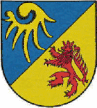 Das Wappen der Samtgemeinde Ahlden ist blau-gold geteilt und zeigt oben einen goldenen Adlerflügel, unten einen roten gekrönten Löwen.[7]