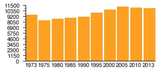 | Jahr | 1973 | 1975 | 1980 | 1985 | 1990 | 1995 | 2000 | 2005 | 2010 | 2013 |