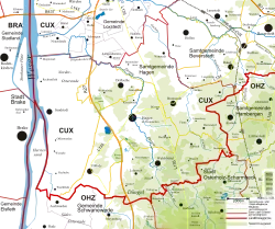 | Lage der Samtgemeinde Hagen im Landkreis Cuxhaven | ||