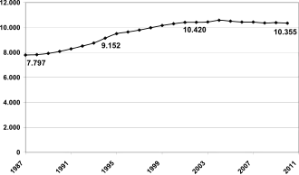 | 2006–2011 | 85,7 | 22 | 11,1 | 3 | – | – | 3,2 | 1 | – | – | 100 | 26 | 52,9 | ||